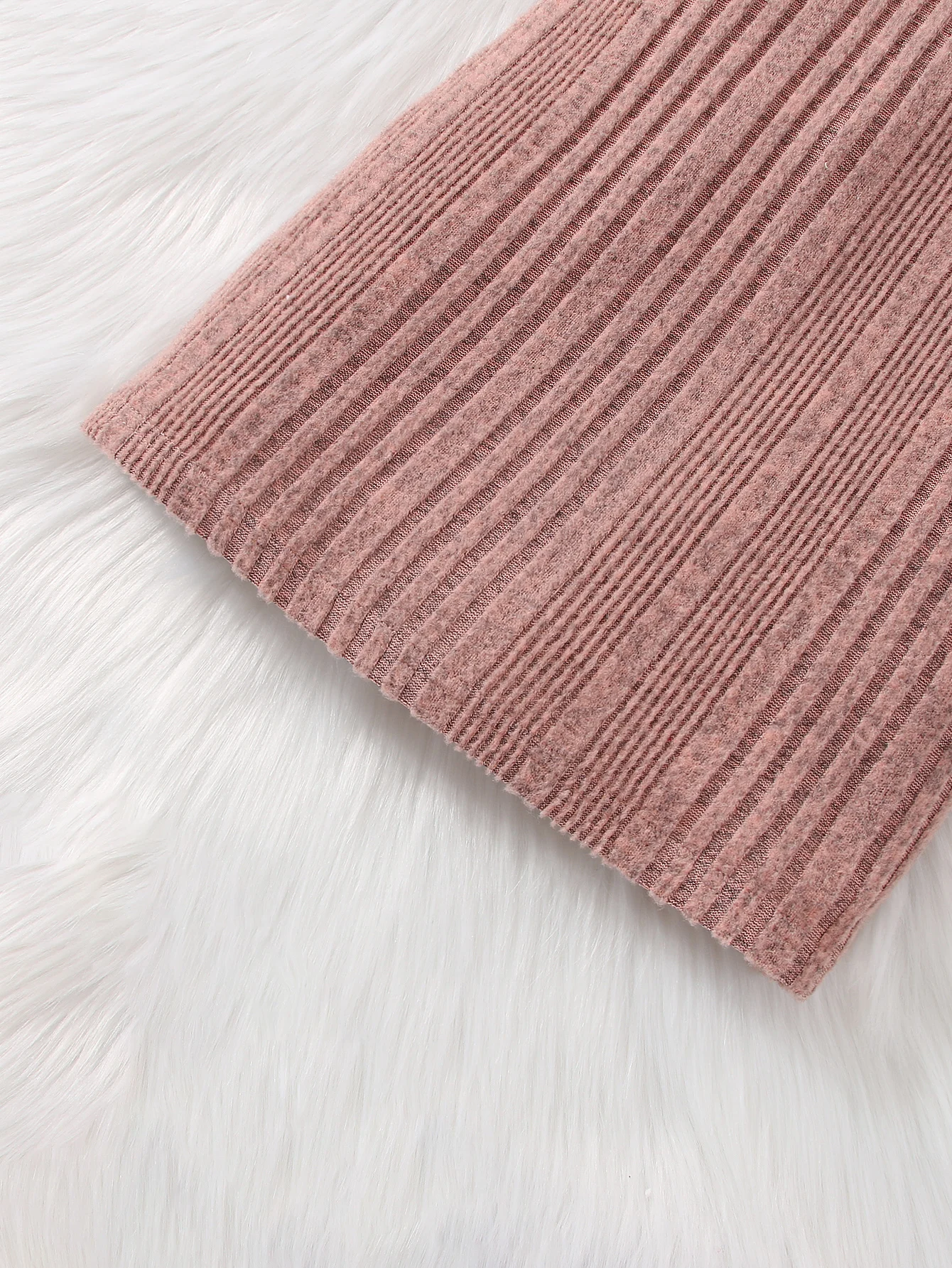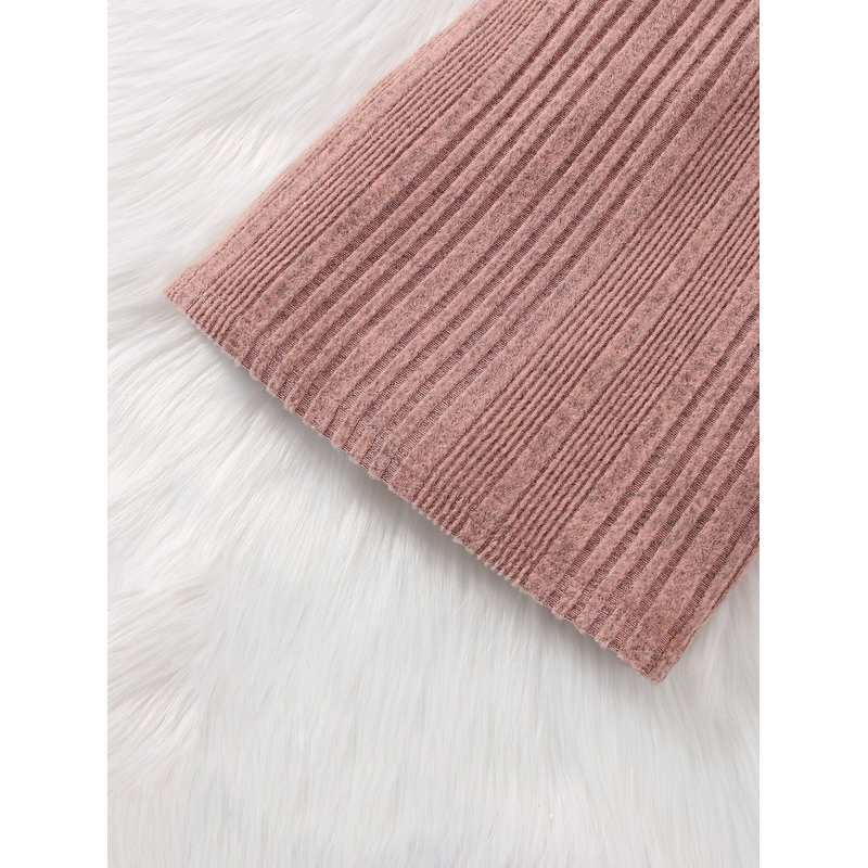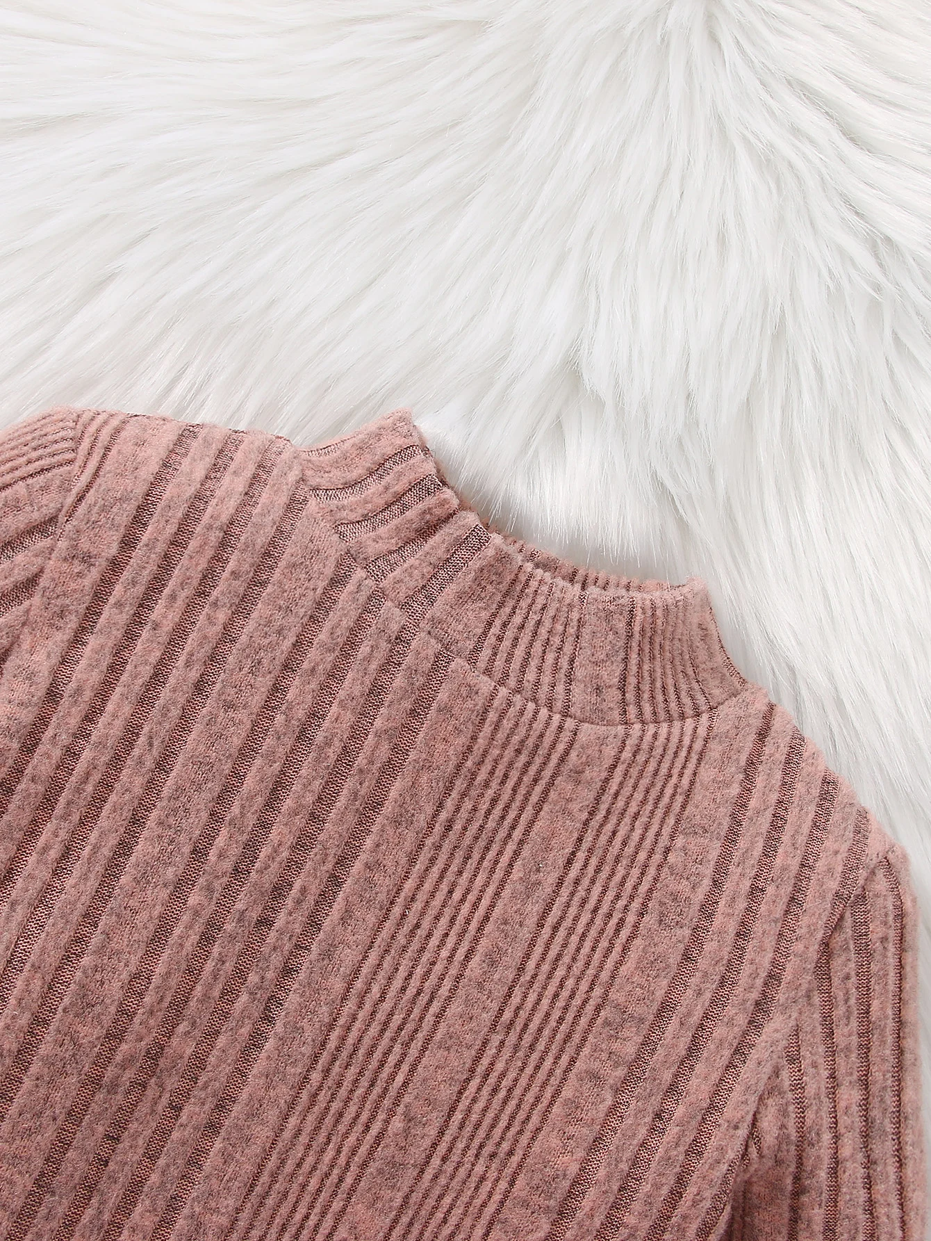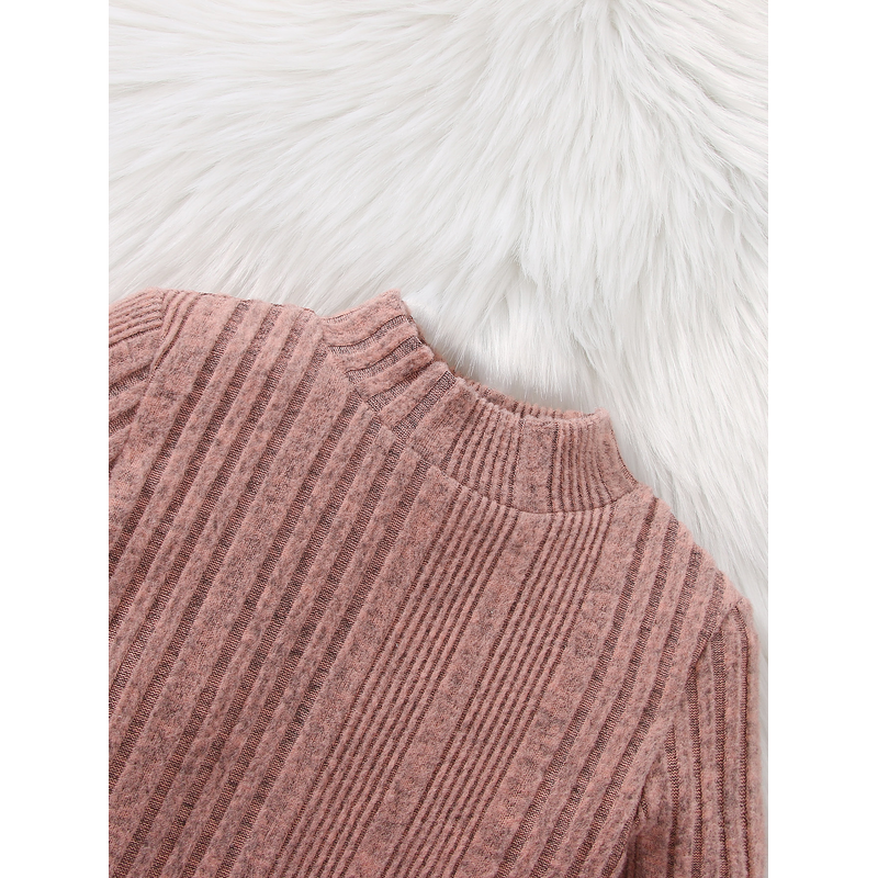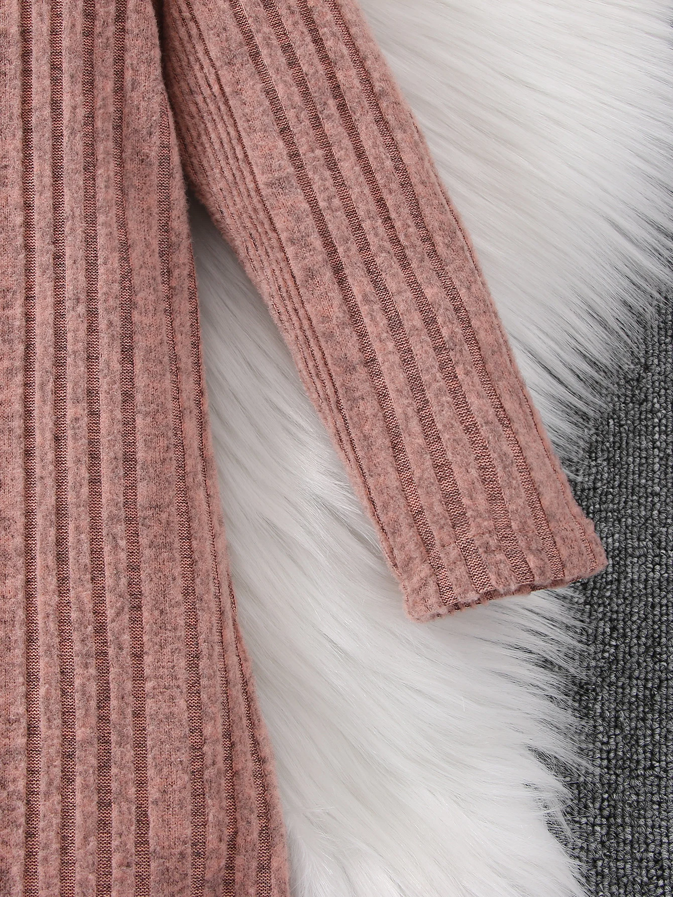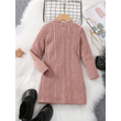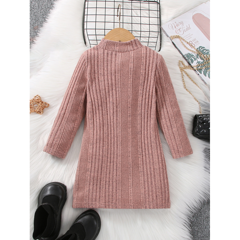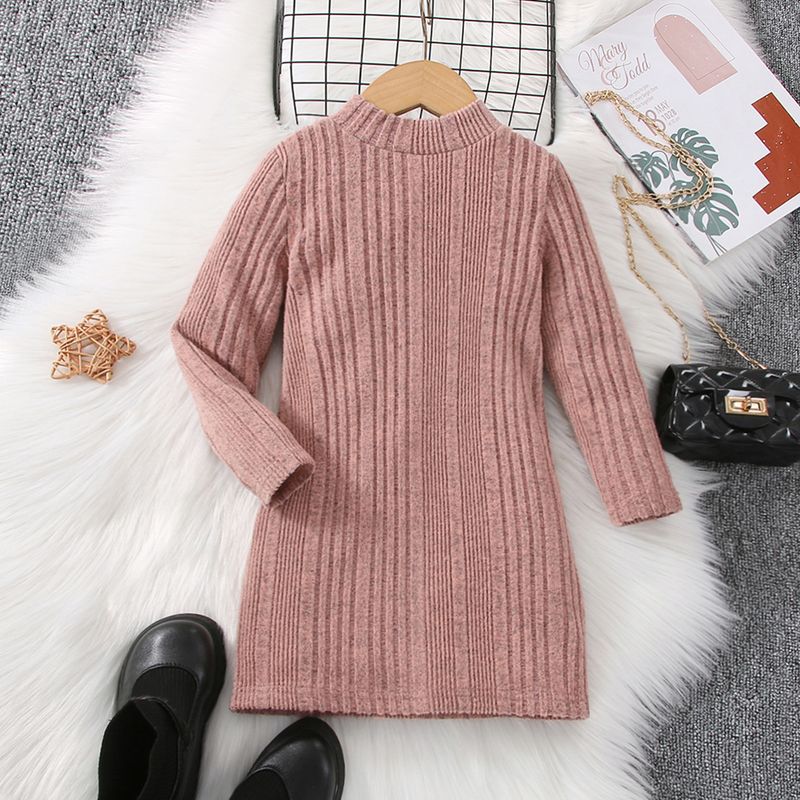 Autumn and winter girls' long sleeved round neck solid color pit stripe casual fashion cute knitted dress