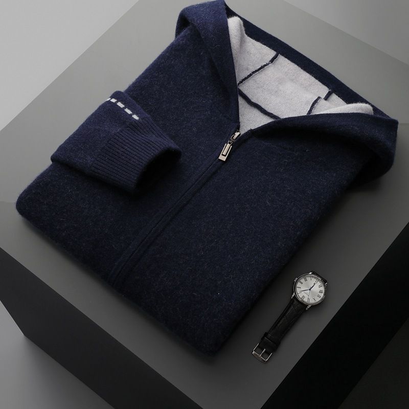 Autumn And Winter Men's Cashmere Thickened Half-high Collar Zipper Cardigan Sweater Dark Gray L