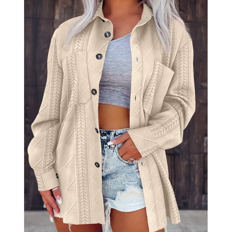 Autumn And Winter Simplicity Fashion Polo Collar Solid Color Buttons Knitting Patterns Coat For Women Khaki XXL