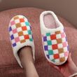 Autumn and winter thick-soled home indoor wear cotton slippers colorfulful plaid pattern plush soft-soled slippers home non-slip plush shoes