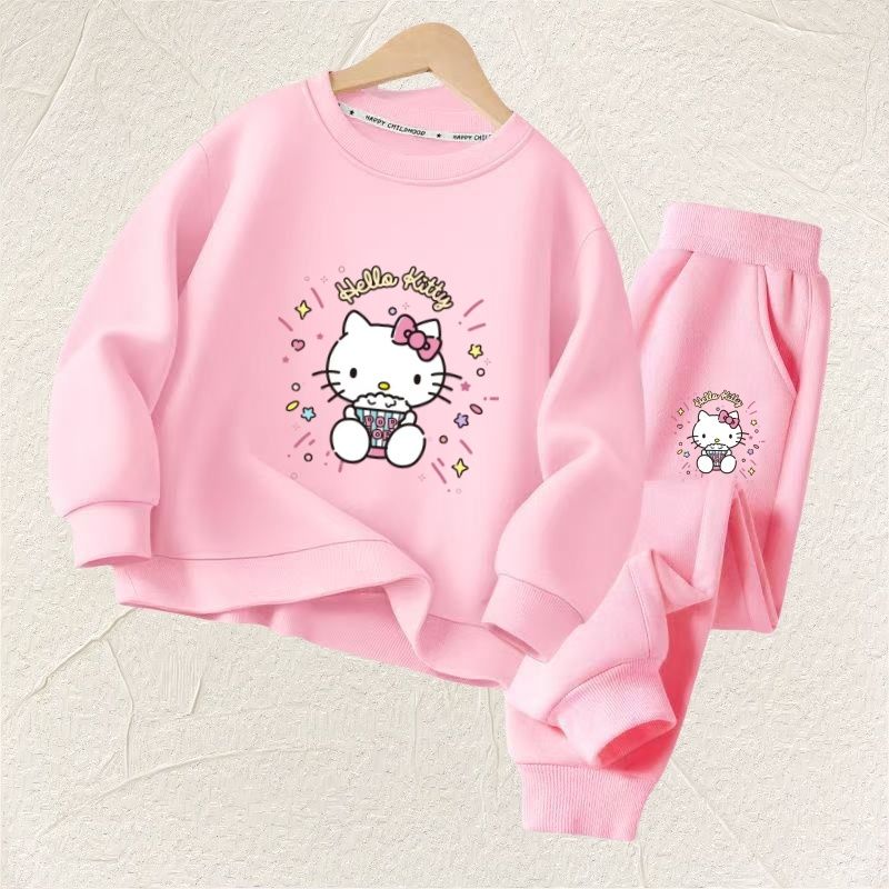 Autumn Baby Girl Clothes Set Children Sanrio Hello Kitty Cartoon Print Sweatshirt and Pants 2 Pieces Suit Kid Long Sleeved Suit