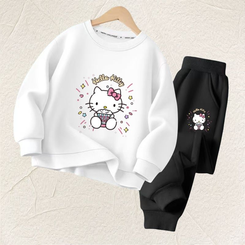 Autumn Baby Girl Clothes Set Children Sanrio Hello Kitty Cartoon Print Sweatshirt and Pants 2 Pieces Suit Kid Long Sleeved Suit