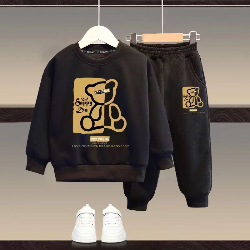 Autumn Baby Girls Clothes Set Kid Boy Cartoon Bear Printed Sweatshirt Pullover And Pants 2pcs Suit Children Top Bottom Tracksuit