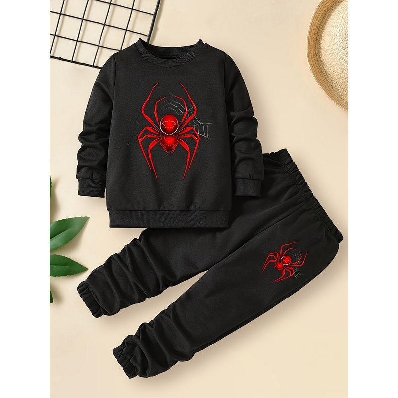 Autumn Children Boy Clothes Set Kid Girls Spider Printed Sweatshirts Pullover Top And Pants 2 Piece Suit Long Sleeve Tracksuits