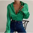 Autumn Cotton Long Sleeve Solid Color Polo Collar Single-breasted Shirt Green S