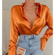 Autumn Cotton Long Sleeve Solid Color Polo Collar Single-breasted Shirt Orange M