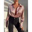 Autumn Cotton Long Sleeve Solid Color Polo Collar Single-breasted Shirt Pink S