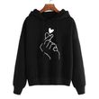 Autumn Fleece Hoodie Solid Color Finger Heart Hooded Korean Fashion Sweatshirts Long Sleeve Top Drawstring Pockets Loose Hoodies