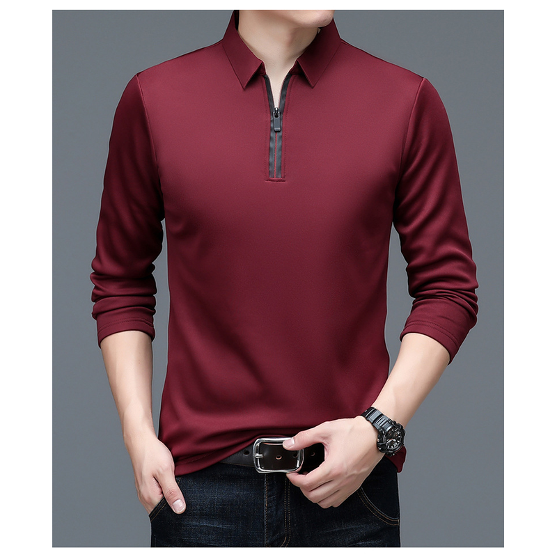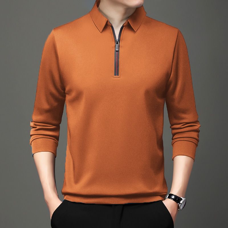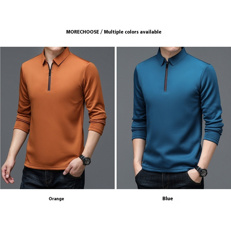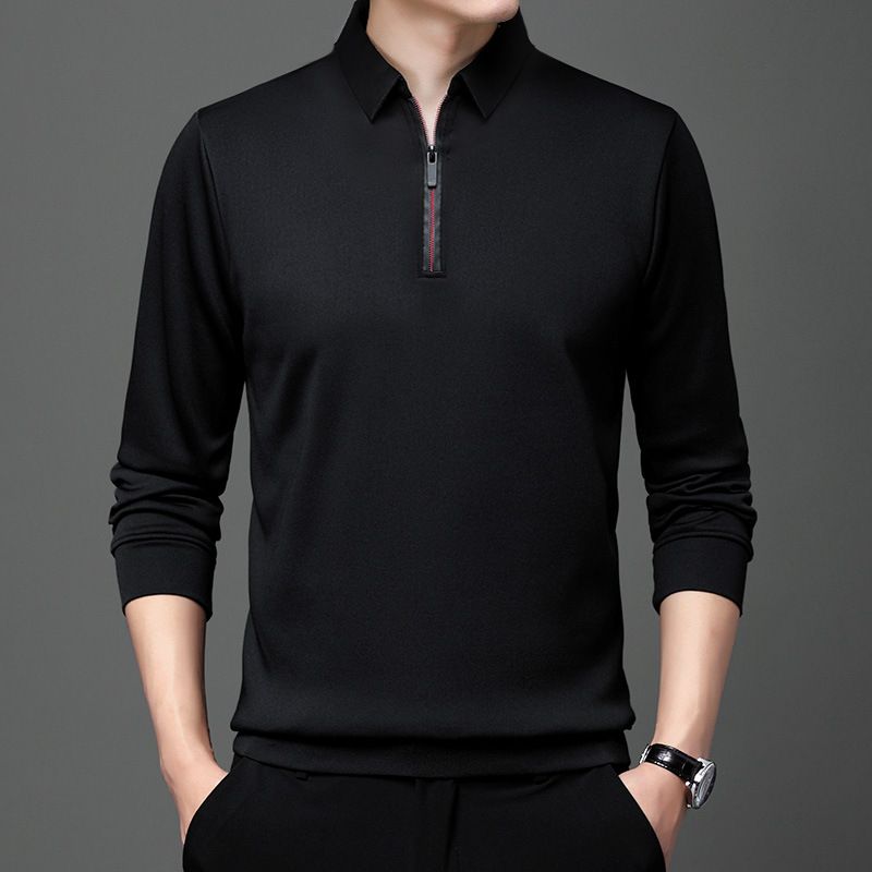 Autumn Half Zipper Polo Shirt Men's Long Sleeve Green 1 XXXXL
