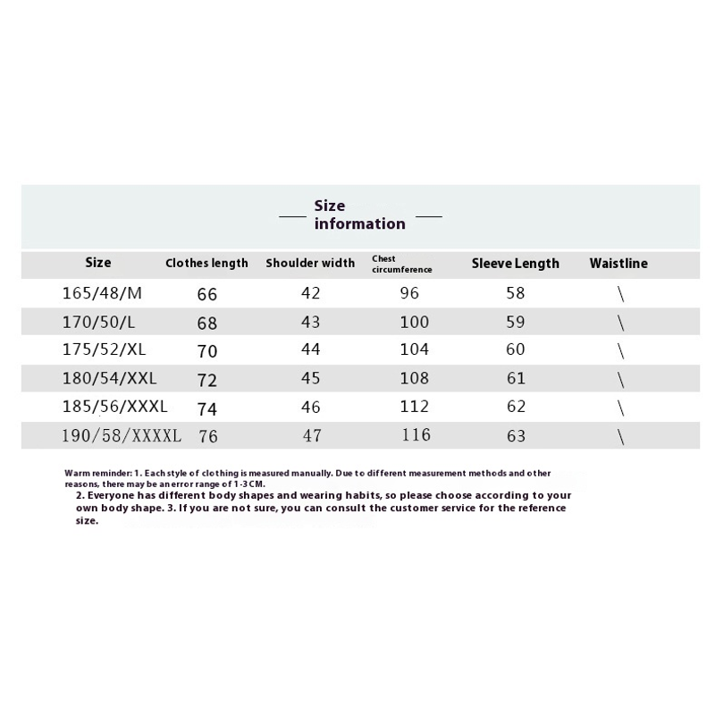 1. Asian sizes are 1 to 2 sizes smaller than European and American people. Choose the larger size if your size between two sizes. Please allow 2-3cm differences due to manual measurement. 2. Please check the size chart carefully before you buy the item, if you don't know how to choose size, please contact our customer service. 3.As you know, the different computers display colors differently, the color of the actual item may vary slightly from the following images.