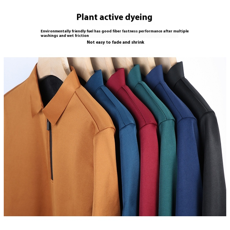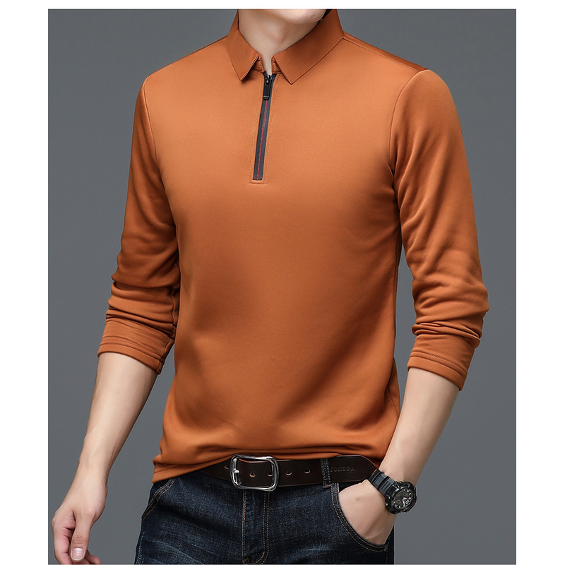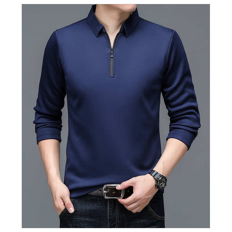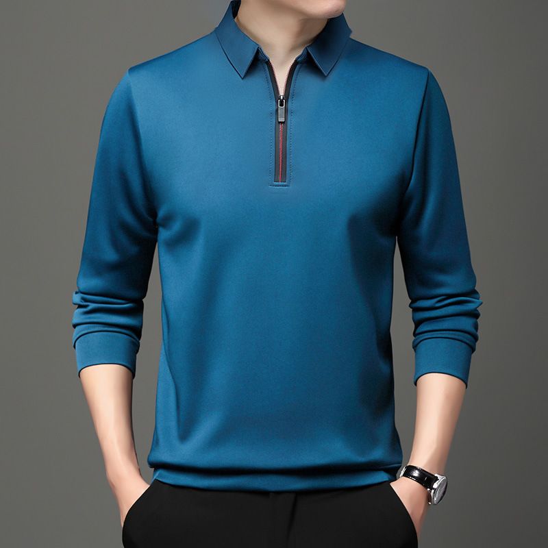 Autumn Half Zipper Polo Shirt Men's Long Sleeve Green XXL