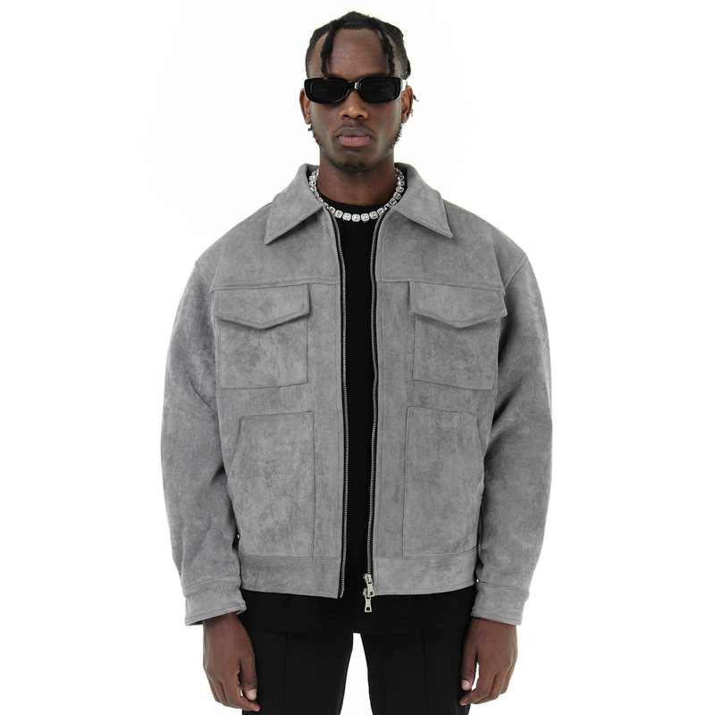 Autumn Jackets Oversize Casual Clothes High Street Pockets Laper Zipper Suede Thick Coat Mens Windbreaker Loose