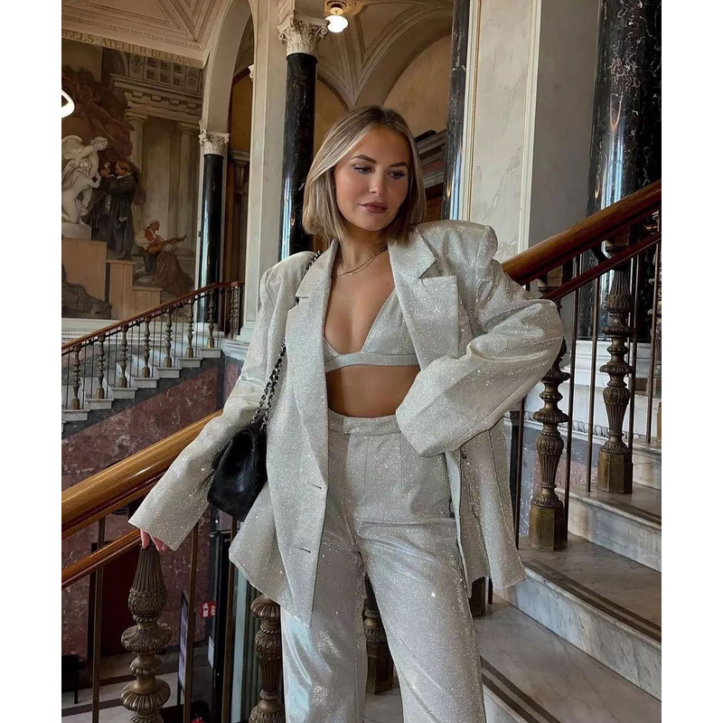 Autumn Leisure Suit Long Sleeve Women's Split Suit Trouser Suit Bras M