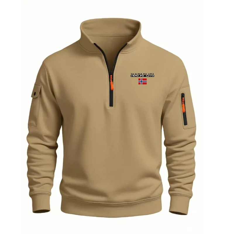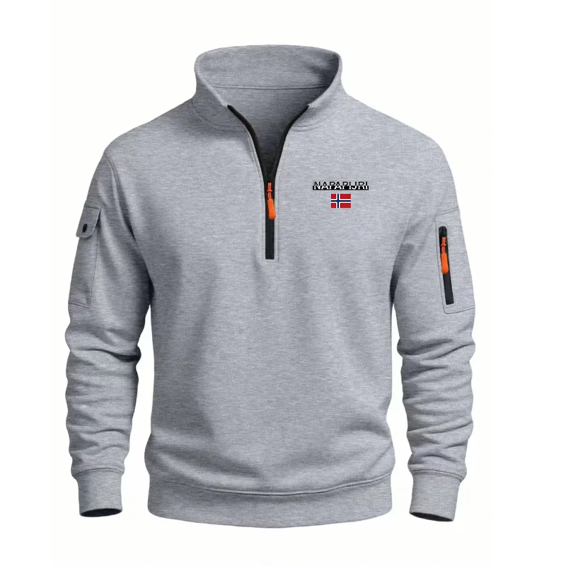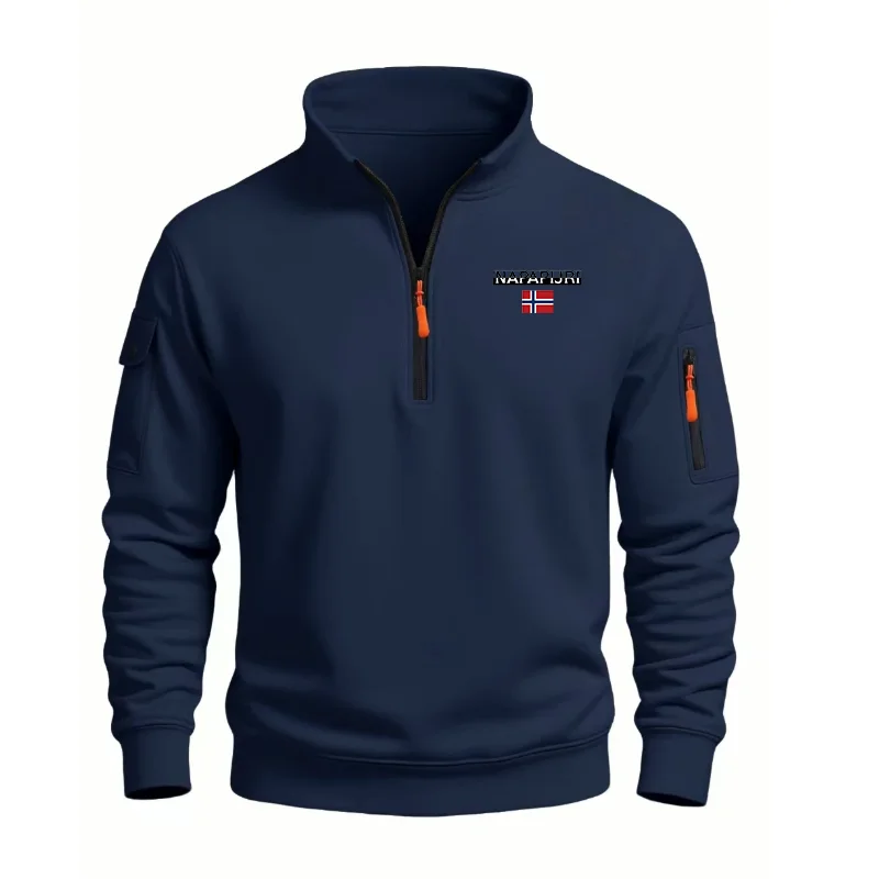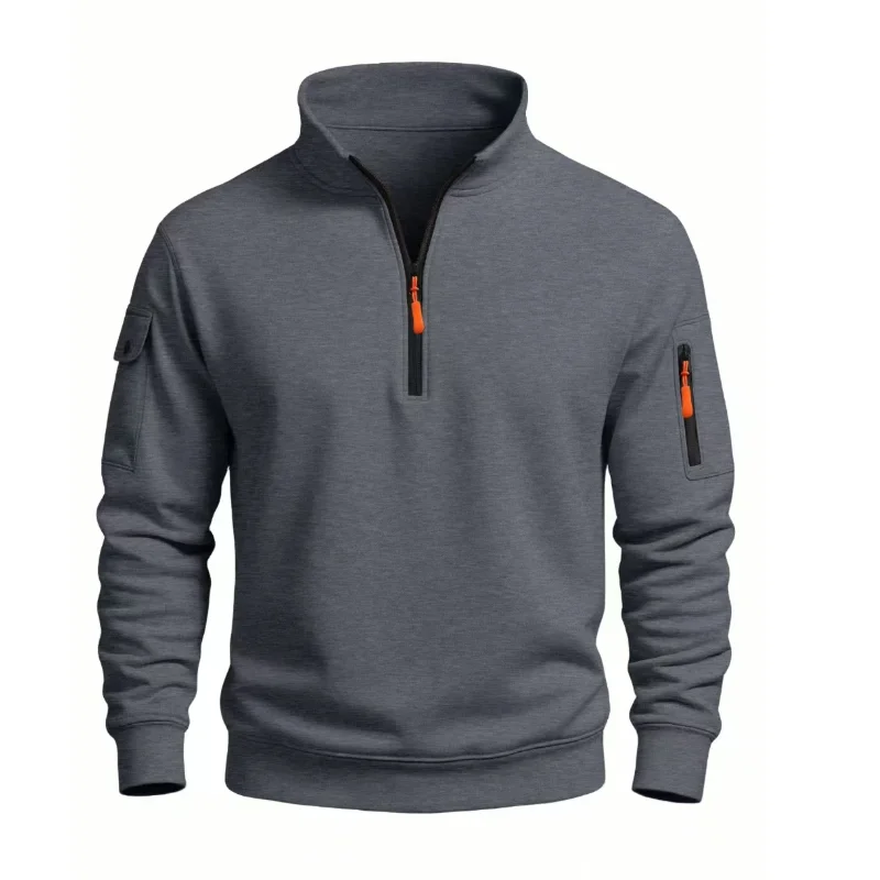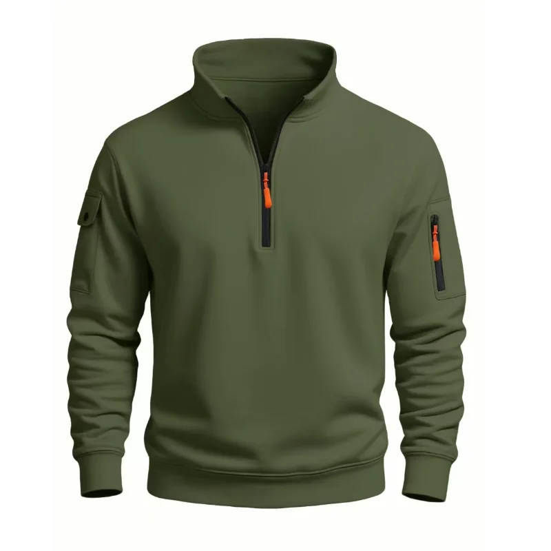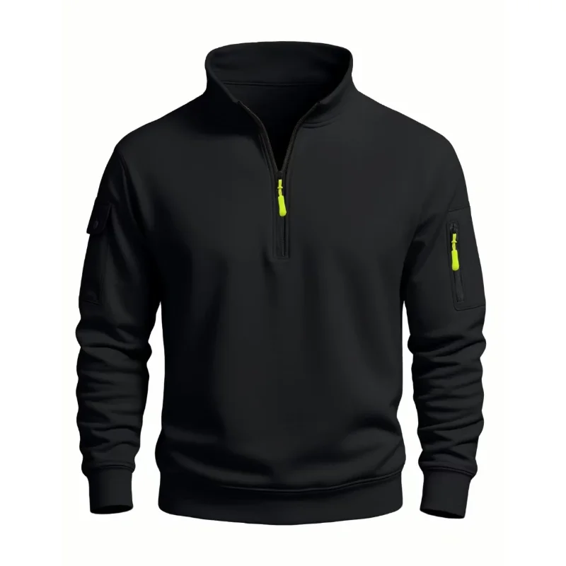 Autumn Men's Half Zipper Sweatshirts Long Sleeve Solid Color Pullover Turtleneck Streetwear Winter Warm Jacket Sport Coats