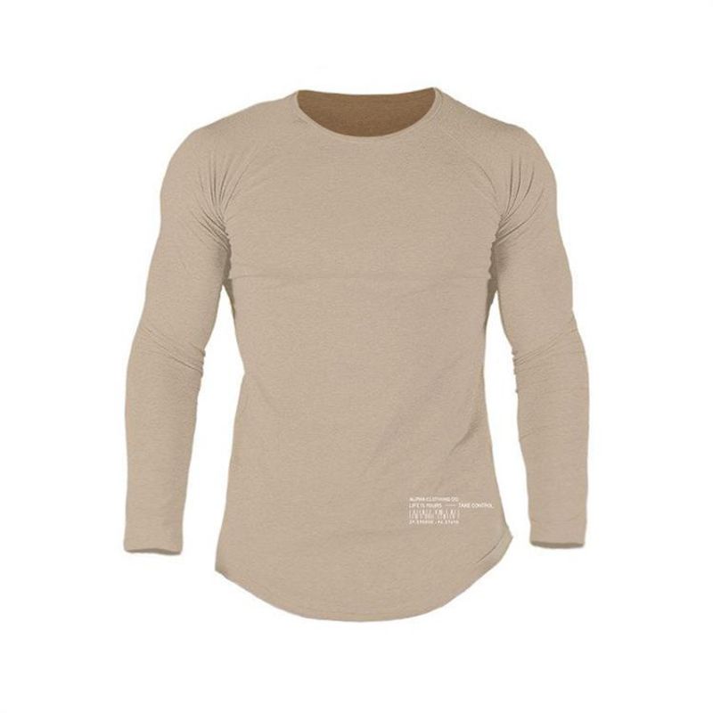 Autumn New Fitness Long Sleeve Men''s Elastic Breathable T-shirt with Pure Colour and Simple Leisure Underwear Training Suit Black 3 XXL