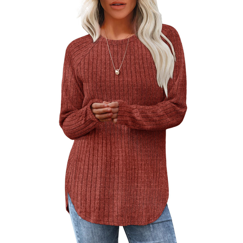 Autumn New Loose Crew Neck Top Women Caramel Color XL