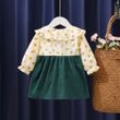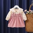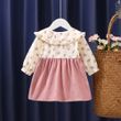 Autumn New Newborn Girls Long Sleeve Dress Cartoon Fragmented Flower Lapel Baby Princess Dress Flower Strap Dress