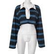 Autumn New Pullover Stripe Polo Collar Short Long Sleeve Blue S