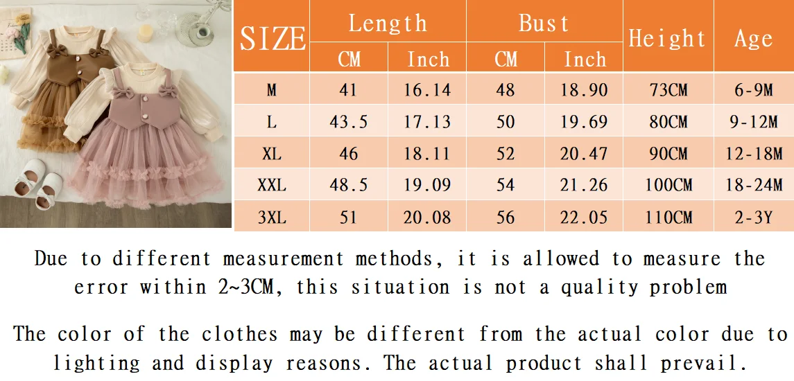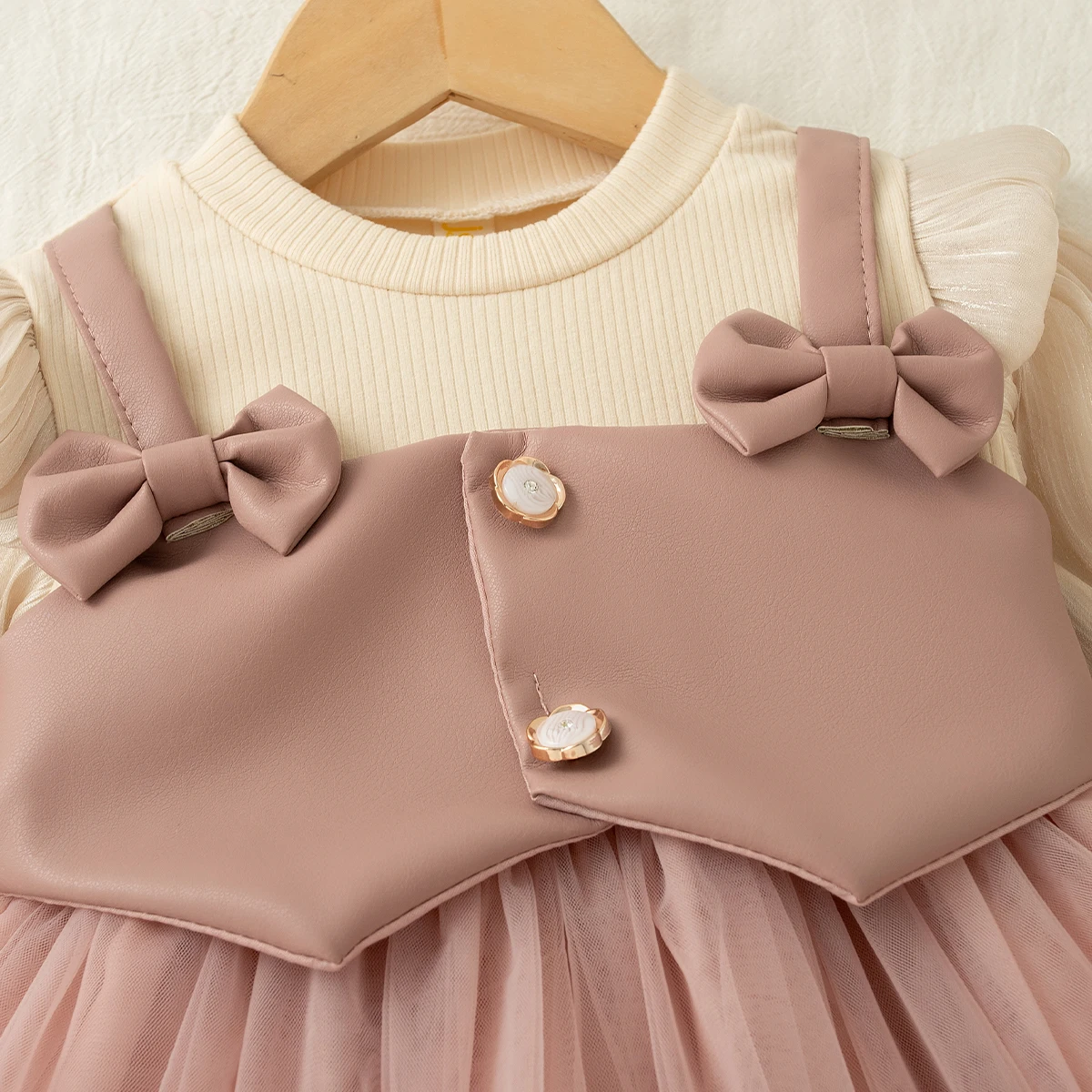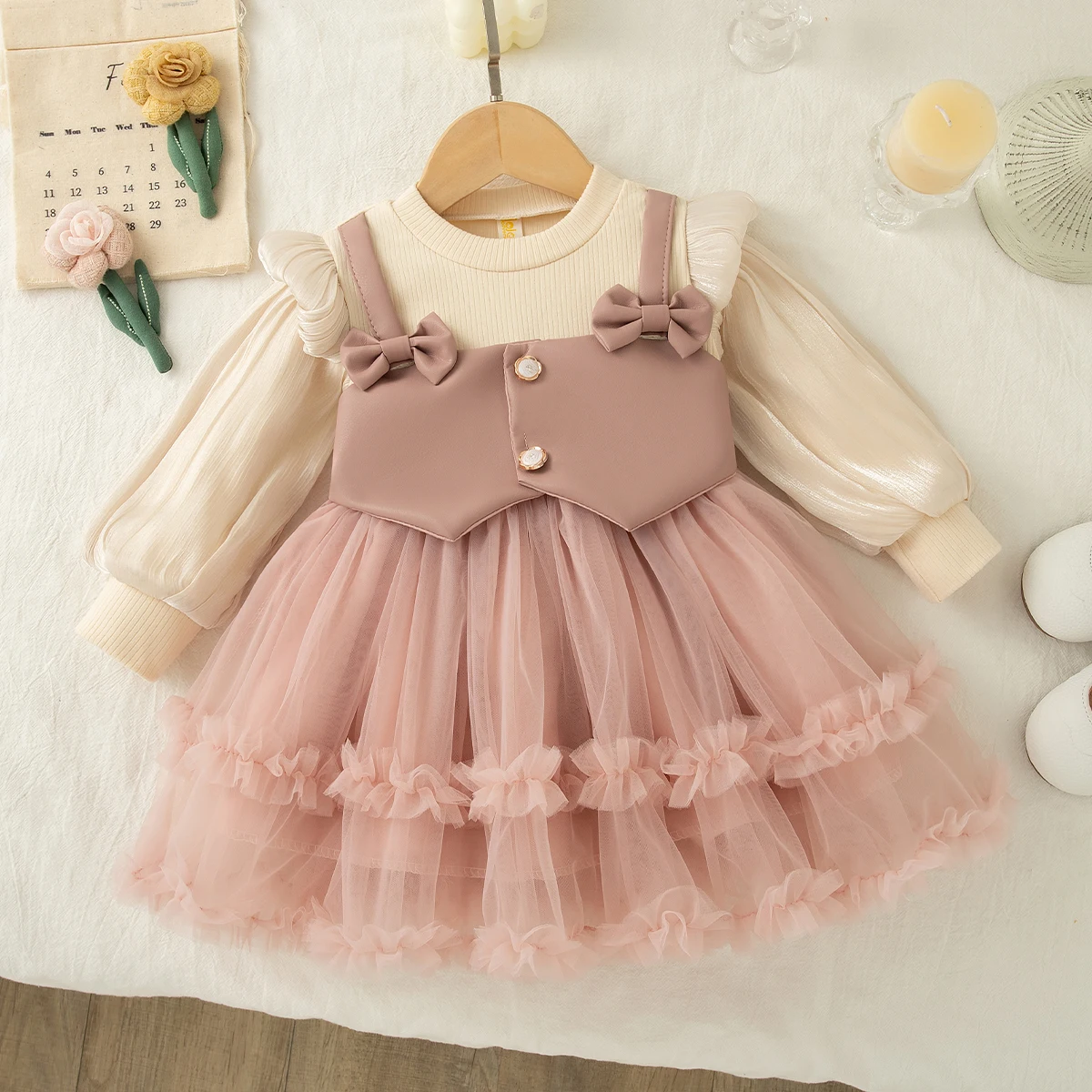 Autumn New Solid Color Chiffon Baby Girl Princess Dress, Sweet Bow Children'S Clothing For Birthdays (6 Months -3 Years)