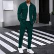 Autumn New Waffle Long-sleeved Trousers Two-piece Set Cardigan Shirt Suit Dark Green M