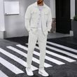 Autumn New Waffle Long-sleeved Trousers Two-piece Set Cardigan Shirt Suit White M