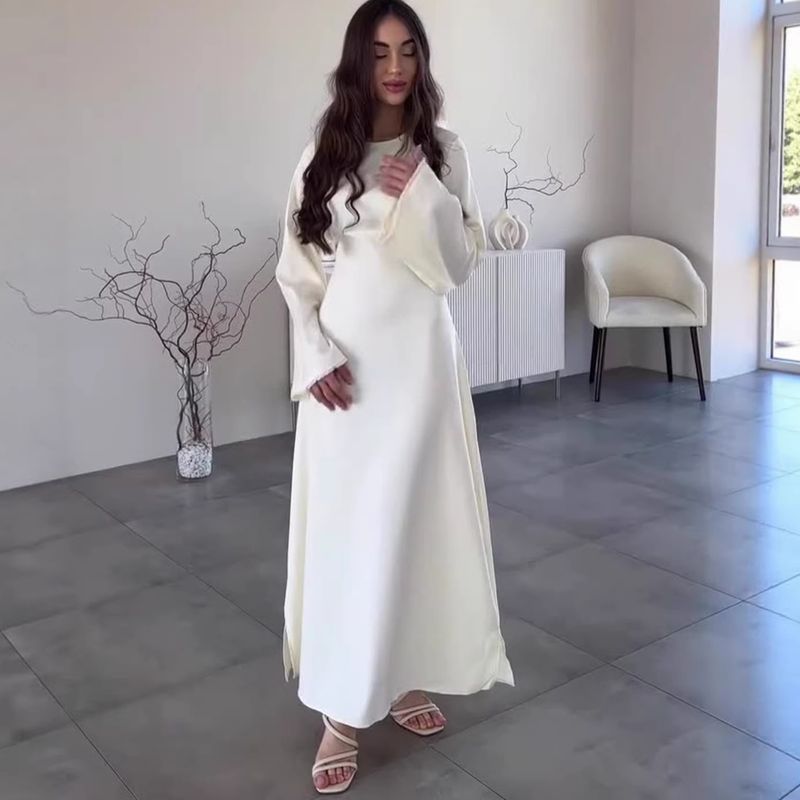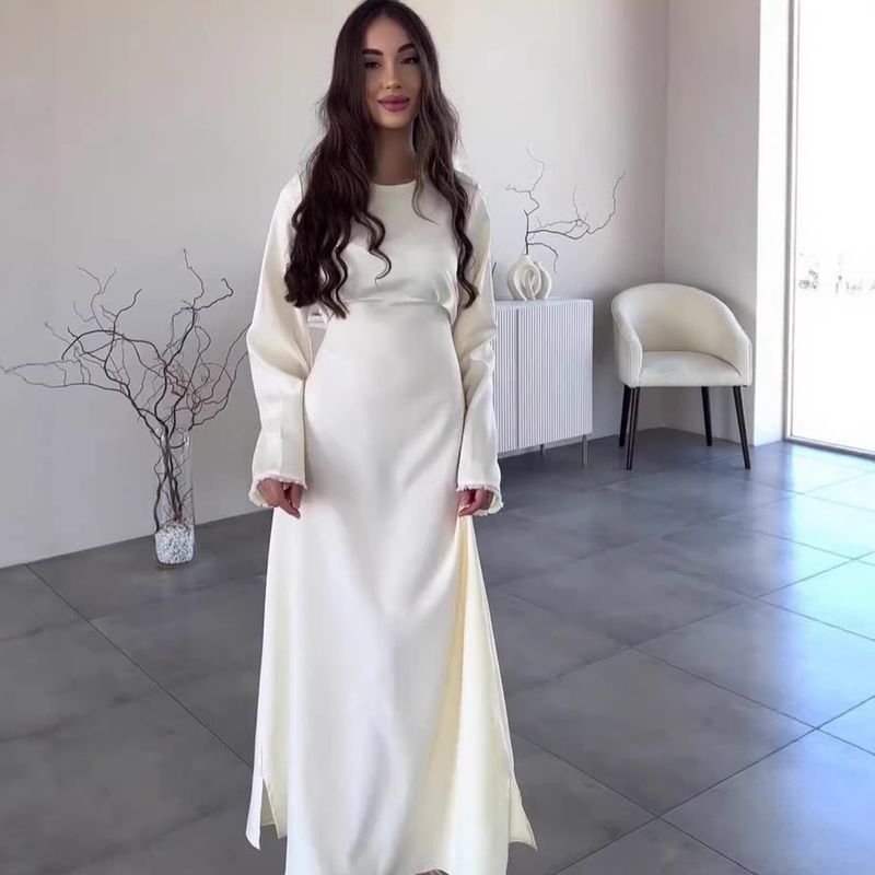 Autumn Satin Long Dresses For Women Flare Sleeve Slim Mermaid Spring French Vintage Wedding Party Prom Robe Vestidos Para Mujer