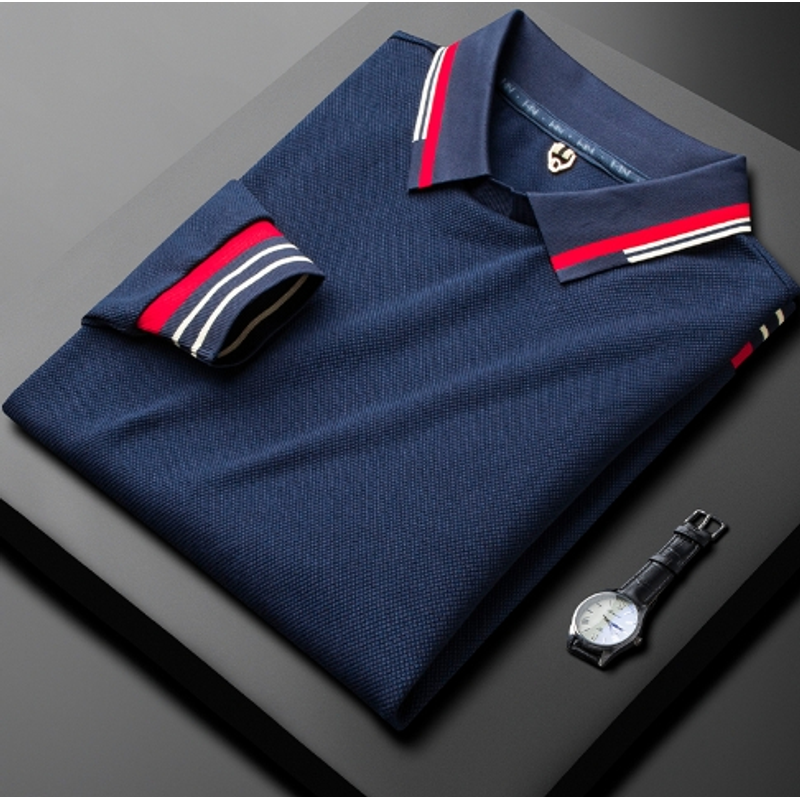Autumn Thin Casual White Polo Shirt Men's Long Sleeve Black L