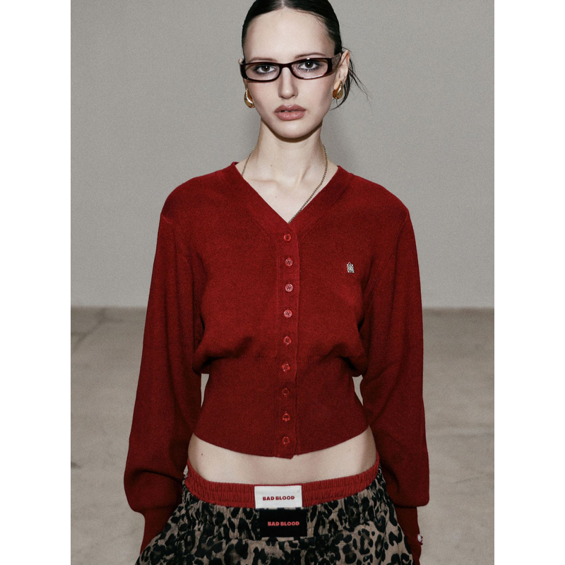 Autumn V-neck Sweater Cardigan Women's Retro Small Fragrant Style Slim Fit Outer Knitted Short Coat