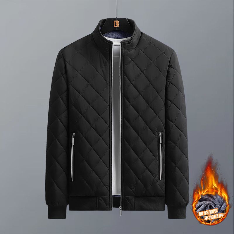 Autumn Winter Bomber Jacket Men Diamond Pattern Fleece Lined Casual Jacket Men Fashion Clothing 2023 Brand New Slim Fit Coat