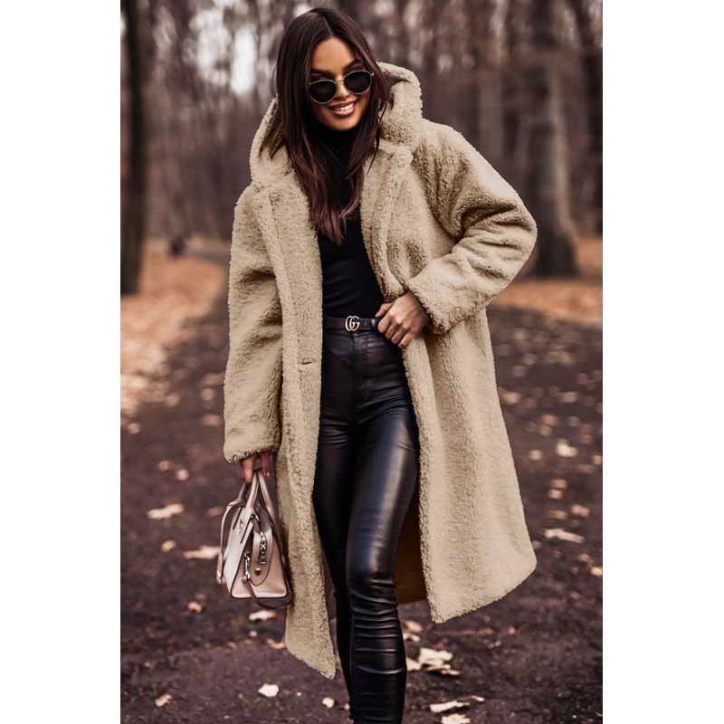 Autumn Winter Fashion Elegant Long Coat Woman Plush Warm Faux Fleece Coat Women Teddy Jacket Female Teddy Coat Outwear Ladies Brown S