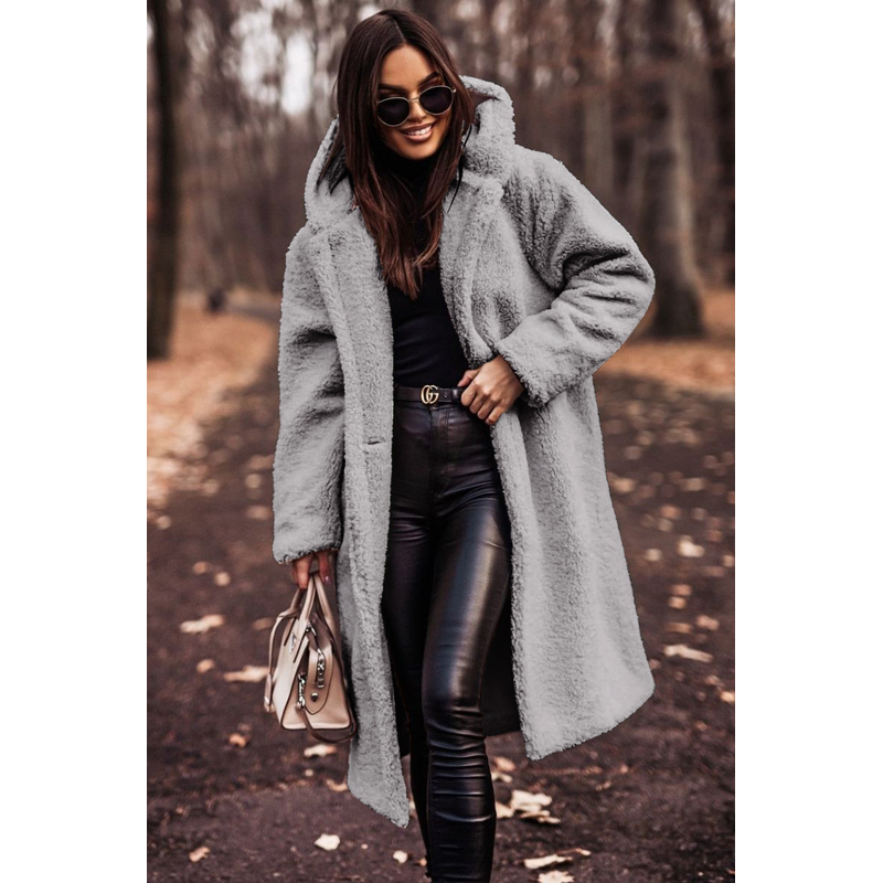 Autumn Winter Fashion Elegant Long Coat Woman Plush Warm Faux Fleece Coat Women Teddy Jacket Female Teddy Coat Outwear Ladies Camel S