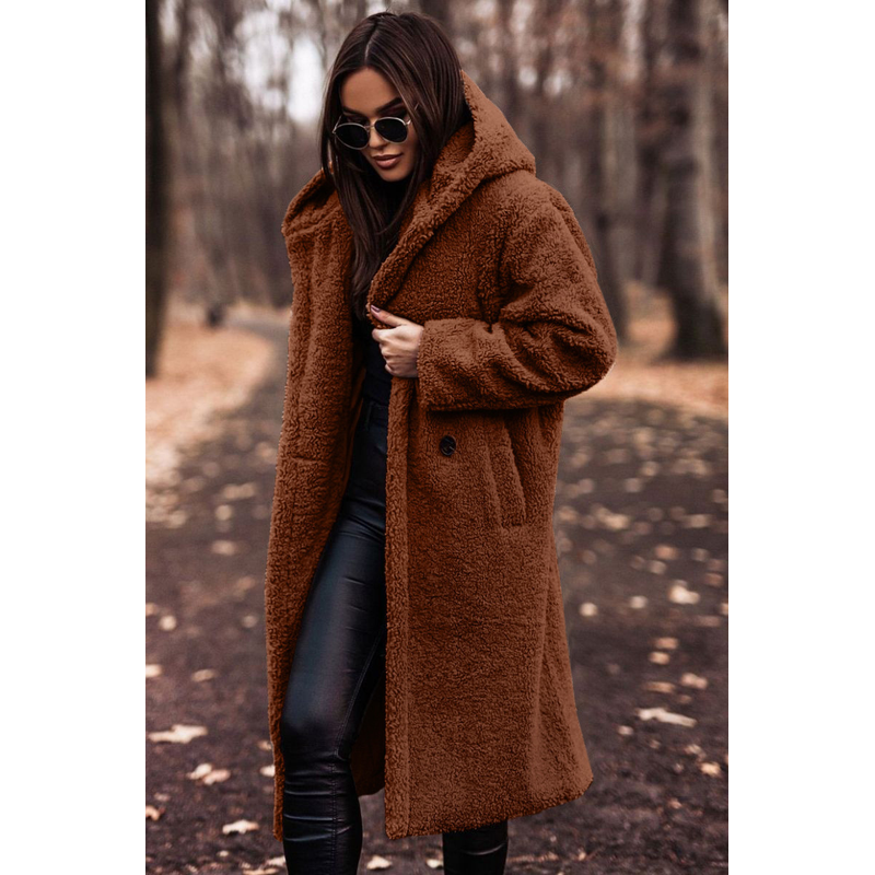 Autumn Winter Fashion Elegant Long Coat Woman Plush Warm Faux Fleece Coat Women Teddy Jacket Female Teddy Coat Outwear Ladies Reddish brown S