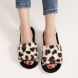 Autumn Winter Leopard Print Slippers Women's Fashion Plush Fur Slides Home Flip Flops Indoor Warm EVA Anti Slip Living Room Shoe