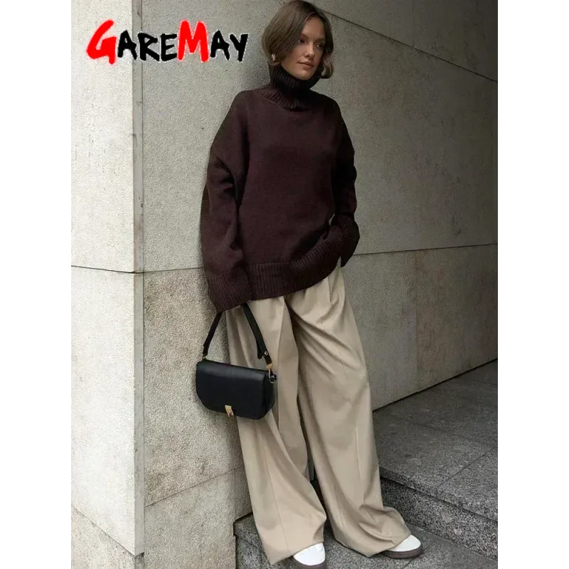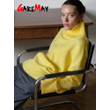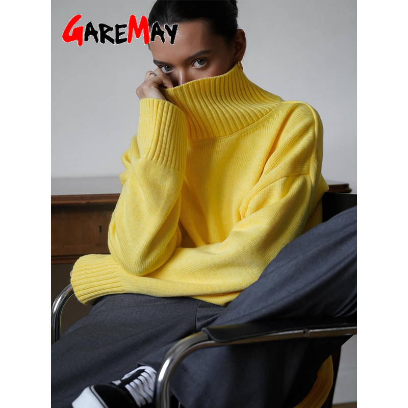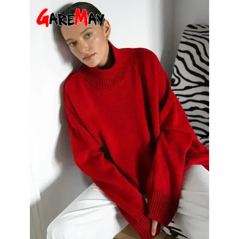 Autumn Women's Knitted Sweater Oversize High Collar Yellow Vintage Pullover Soft Winter Warm Vintage Red Sweaters for Women