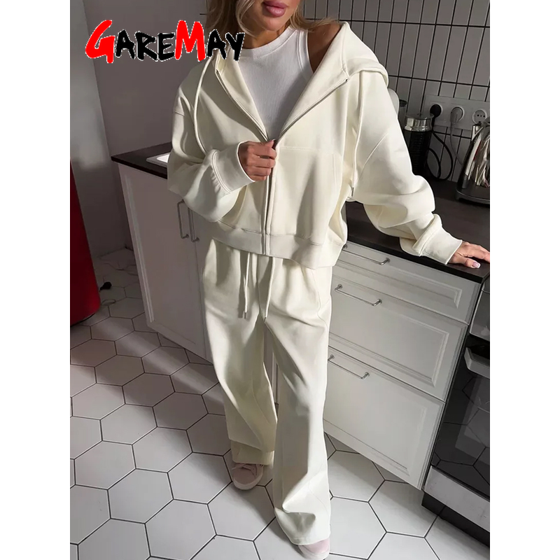 Autumn Women's Tracksuit with Zipper and Trousers Gary Casual Two Piece Set Women Casual Yellow Pant Sports Suit with A Hood