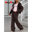 Autumn Women's Tracksuit with Zipper and Trousers Gary Casual Two Piece Set Women Casual Yellow Pant Sports Suit with A Hood