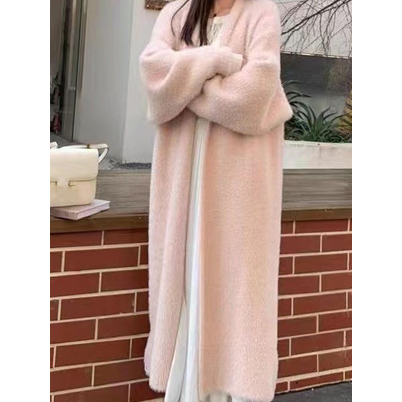 Autumn/Winter Lazy Style Warm Knee Length Thickened Women Cardigan Pure Imitation Mink Fleece Knitted Sweater Women Warm Coat