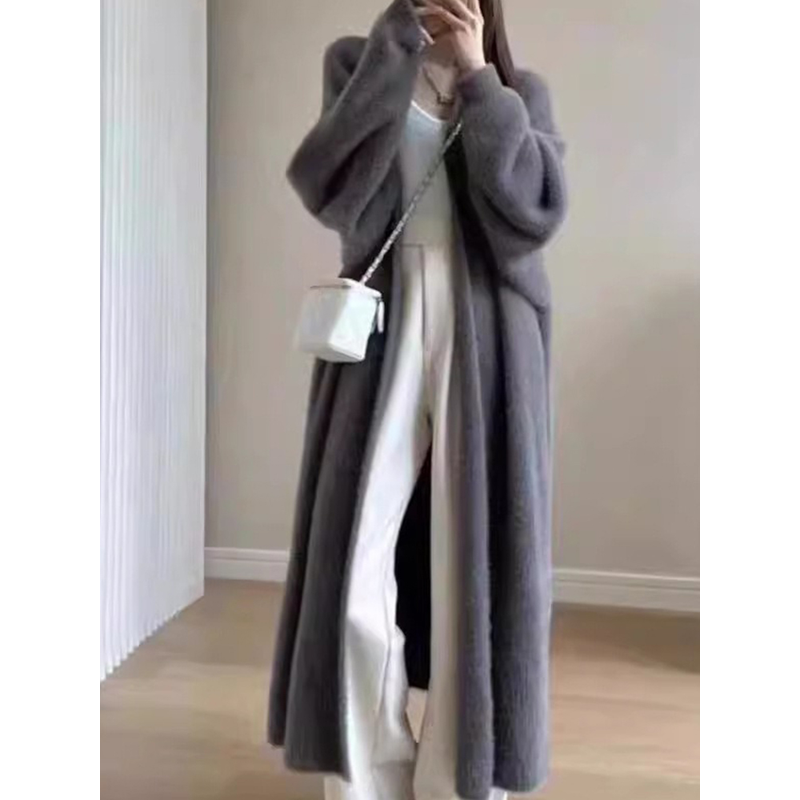 Autumn/Winter Lazy Style Warm Knee Length Thickened Women Cardigan Pure