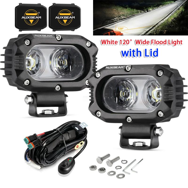 AUXBEAM 4 Inch Square LED Driving Lamp Work Ligh with Harness for Truck Pickup Offroad (Flood/Spot Light)