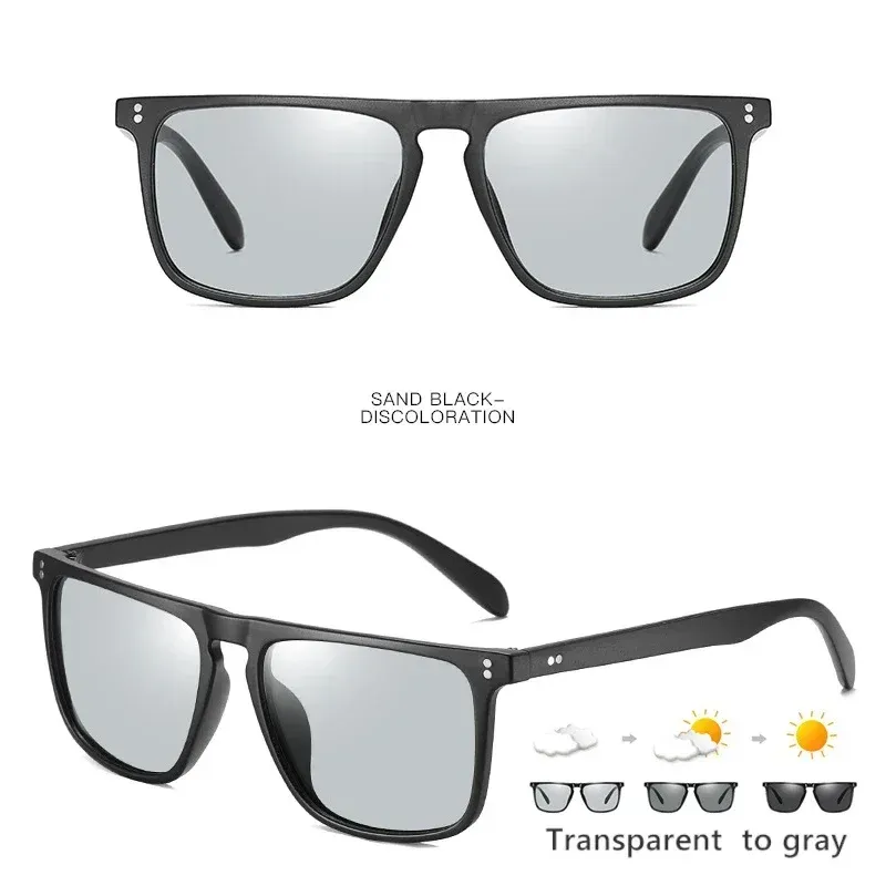 Available Trendy Flat Top Square Photochromic Glasses Stylish Sports Eyewear for Car Running Driving Vacation Travel and Fishing