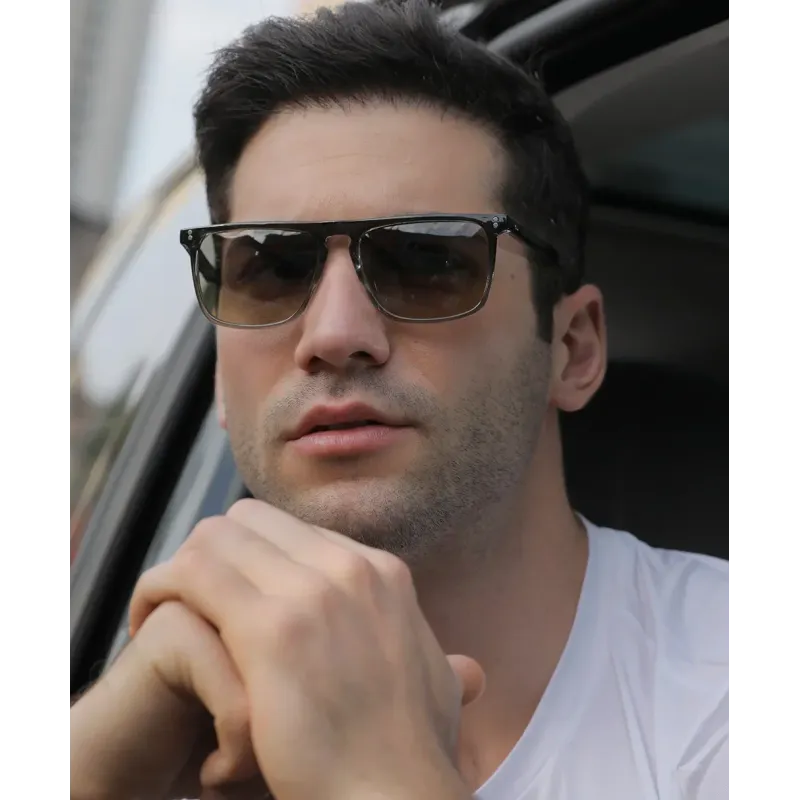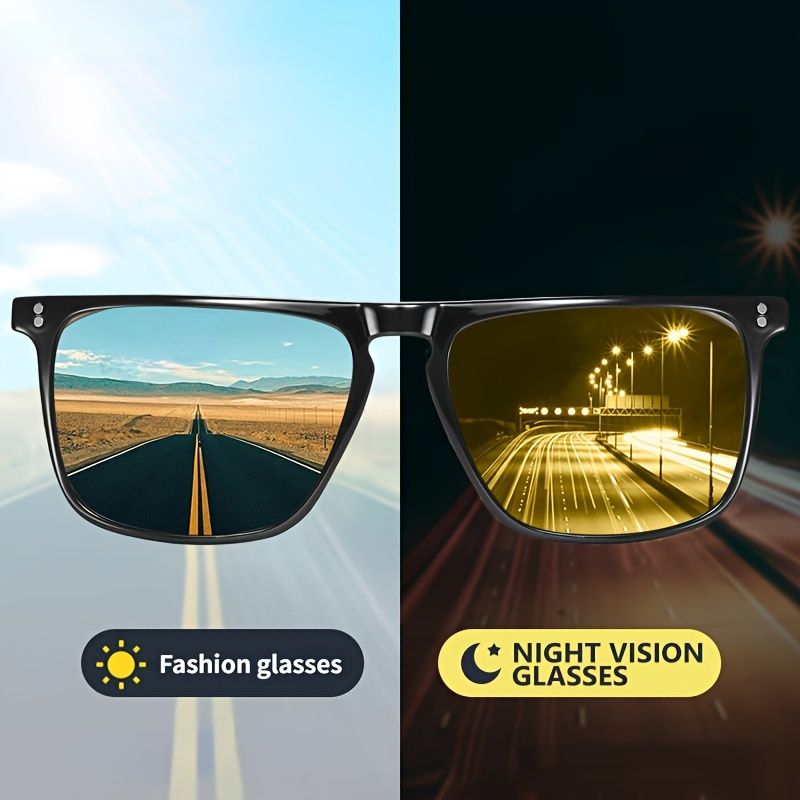 Available Trendy Flat Top Square Photochromic Glasses Stylish Sports Eyewear for Car Running Driving Vacation Travel and Fishing