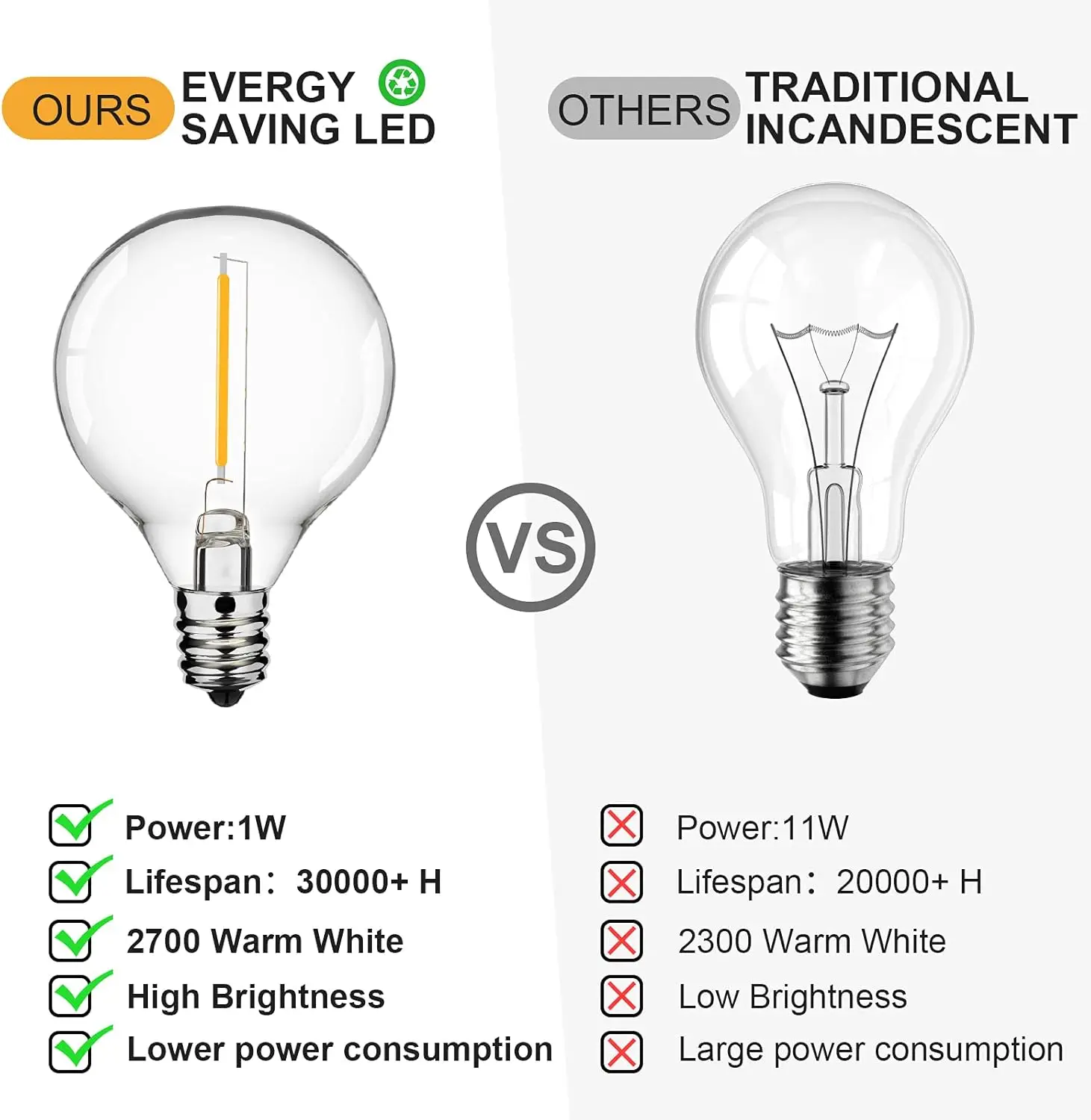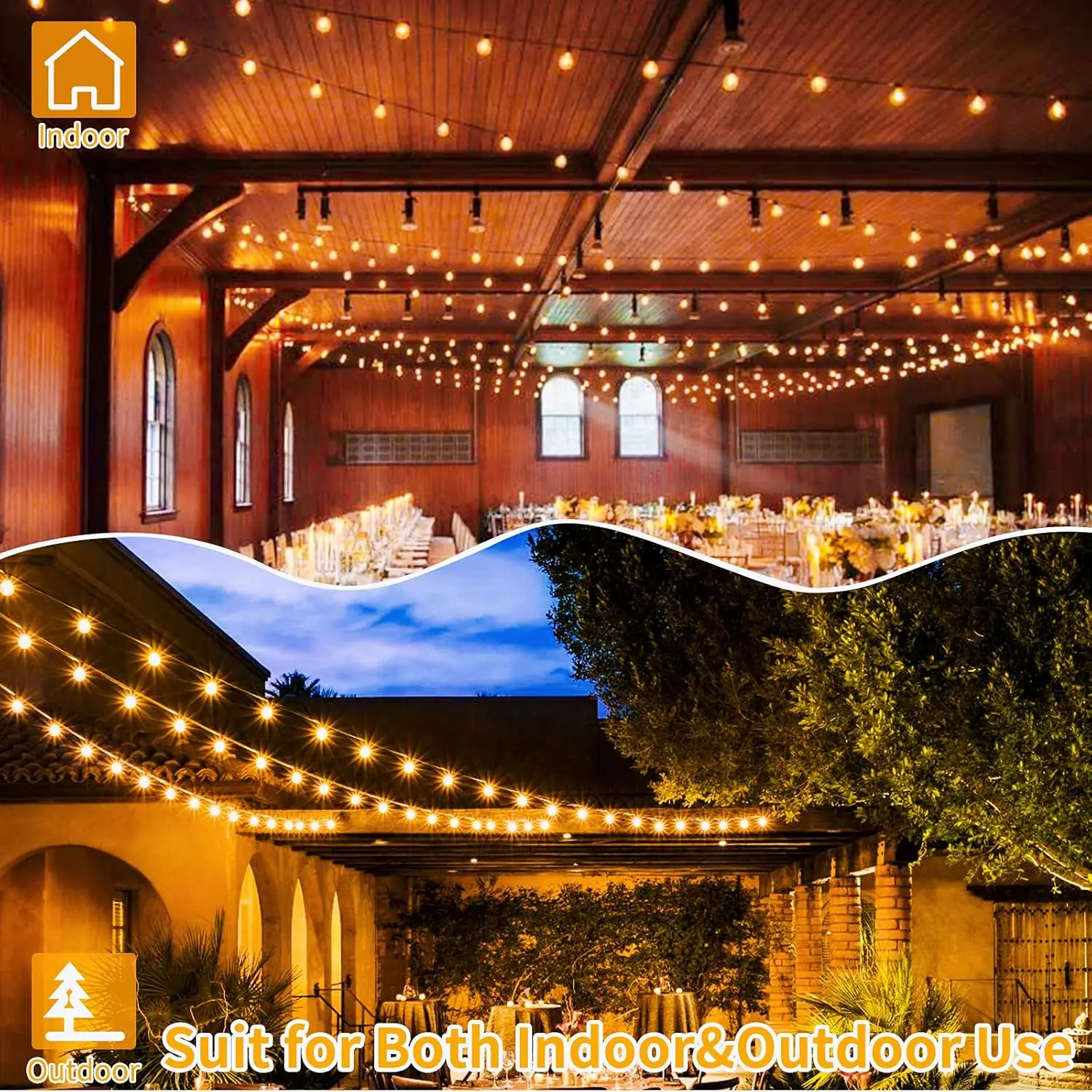【String Lights for Various Scenarios】 2700K warm white outdoor patio lights can be used to decorate Christmas wedding holiday yard garden bistro cafe gazebo porch pergola balcony deck camping tent tree commercial or indoor Home.