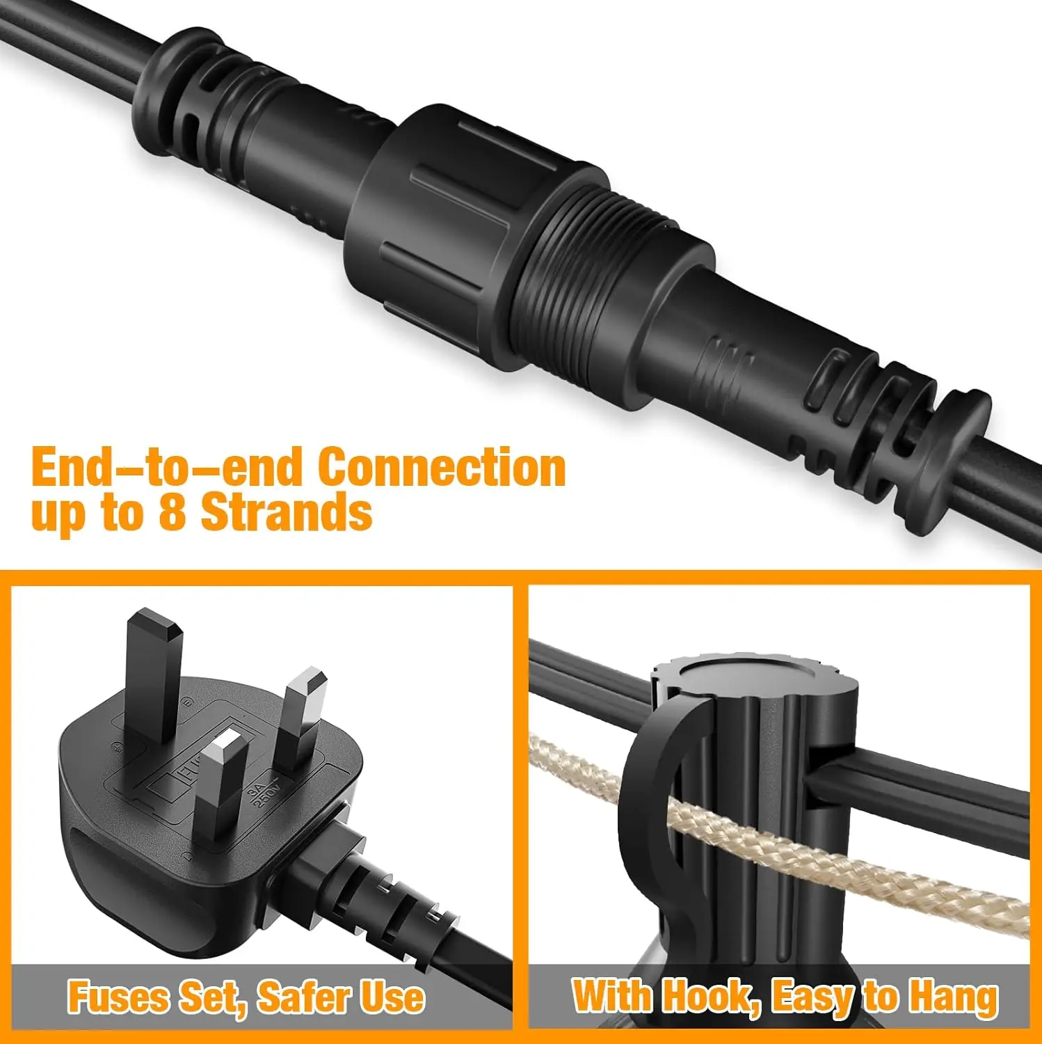 【 Easy to Install】 The hooks on the side can be used to fix the light string with straps. Please check that all bulbs are tightened before hanging.
