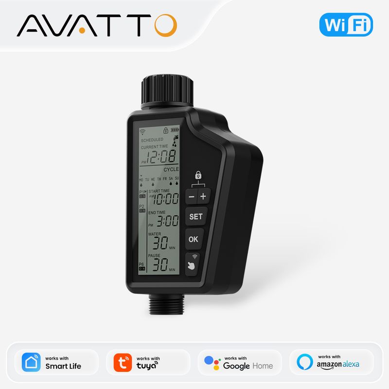 AVATTO Tuya WIFI Smart Irrigation Water Valve Timer,Multifunctional,Smart Garden Watering Timer Compatible & Alexa Google Home