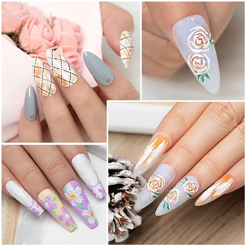 3. Use gypsum gel to draw flower/plaster/diy on the nails