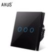 AXUS EU Touch Switch AC100-240V Led backlight Panel Tempered Crystal Glass wall Light sensory Switches 1/2/3 Gang Interruttore