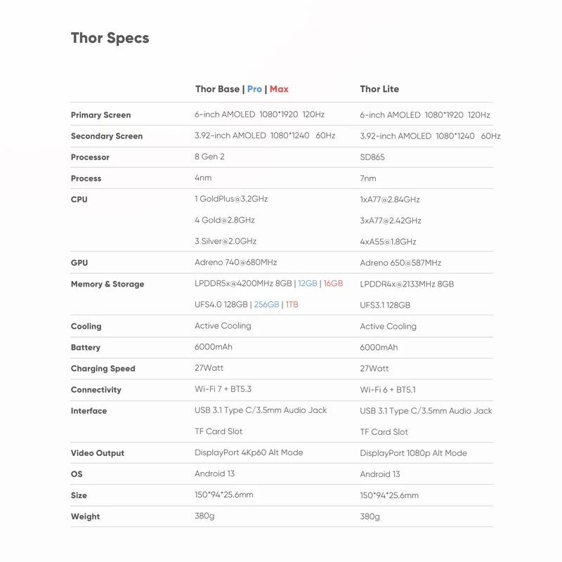 AYN Thor Android Handheld Dual Screen Clamshell 6'' AMOLED Screen 1080p Gaming Entertainment Device