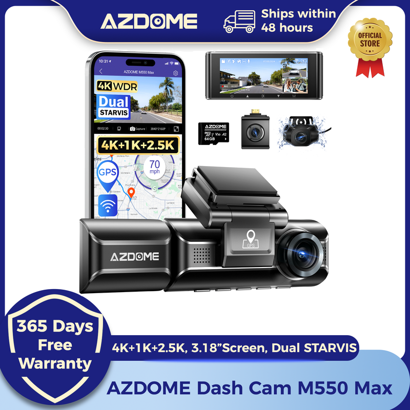 AZDOME M550 Max Dash Cam Ultra HD 4K+1K+2.5K 3.18”Screen Built-in GPS Wifi Car DVR 24H Parking Monitor Night Vision Super Capacitor