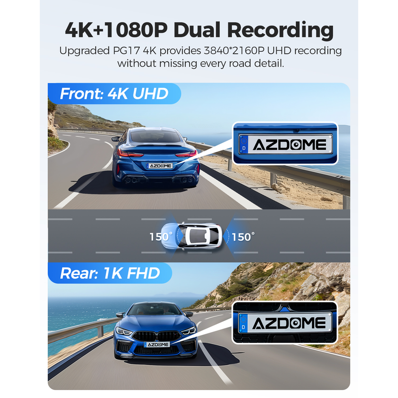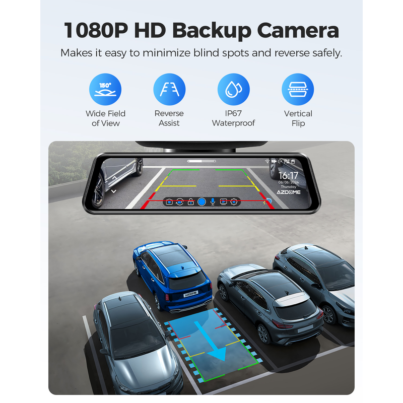 The AZDOME Mirror Dash Cam improves the resolution of the backup camera to 1080p, ensuring that the dual camera can record your driving clearly, register and record license plates, road signs, and collisions, and provide you with all-round protection.