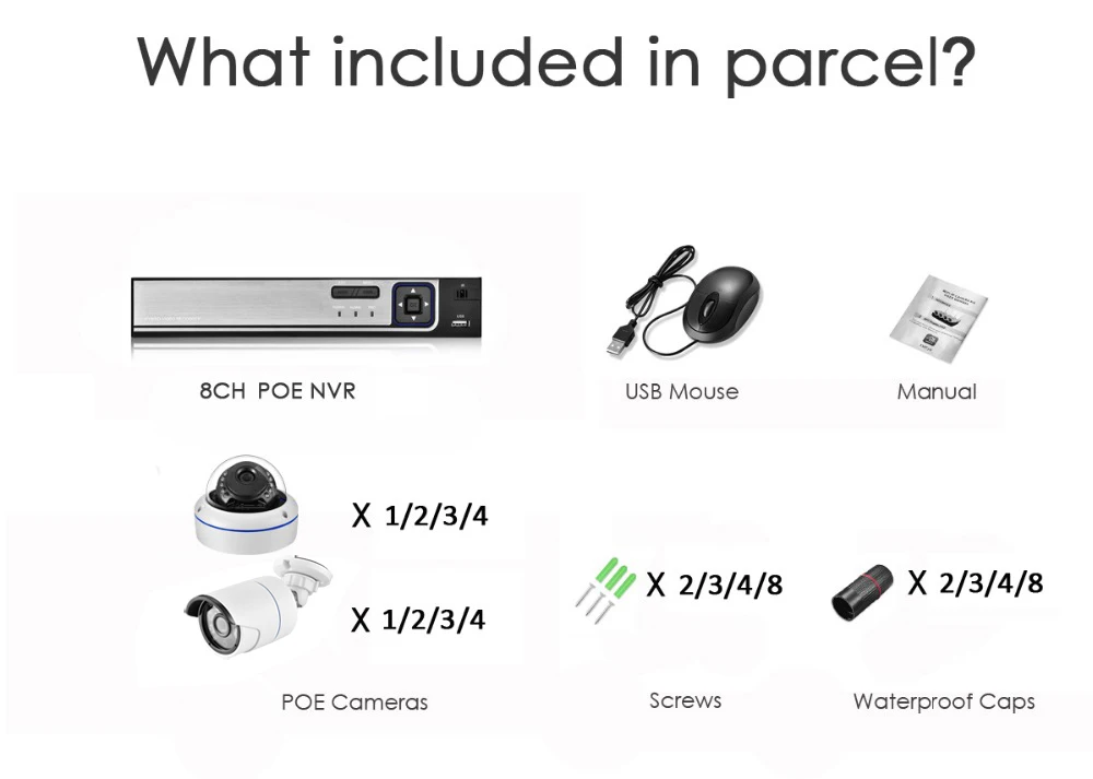 SYSTEM:The NVR support 5MP/4MP/3MP/2MP/1MP. The camera is 3MP camera